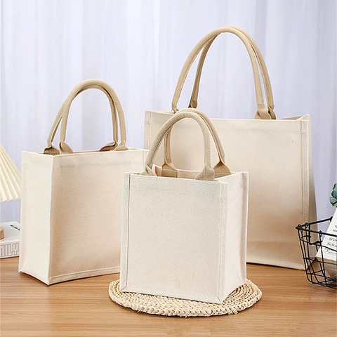 Bolsa de Lona Tridimensional Personalizada de Fábrica OEM, Bolsa de Lona Reutilizable Ecológica, Bolsa de Lona Laminada en Blanco de Varios Tamaños
