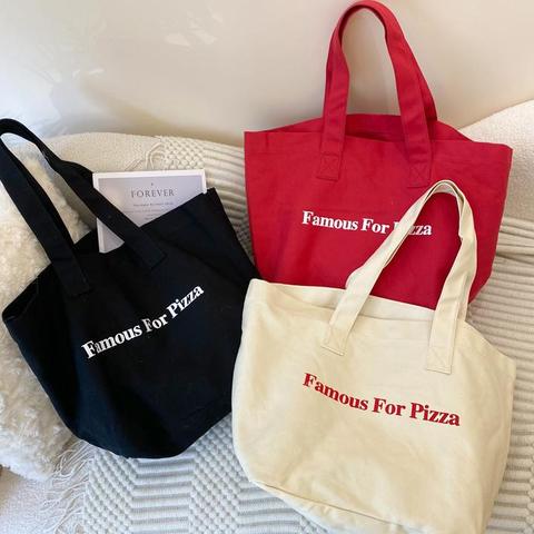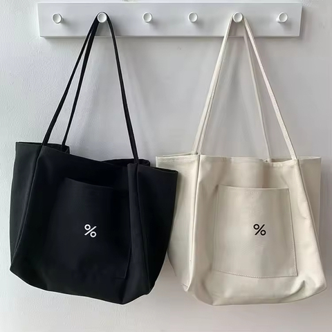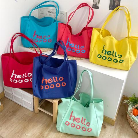Bolso de lona de hombro con logotipo de letra personalizado de moda, bolso de lona de algodón liso versátil informal de gran capacidad