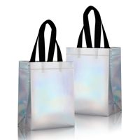 Muestra gratis láser no tejido embalaje de regalo bolsa de compras logotipo personalizado iridiscente holográfico no tejido bolsa de mano para fiesta