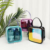 Neceser organizador de maquillaje Pu con espejo transparente láser a prueba de agua, neceser portátil con cremallera, neceser transparente de Pvc con logotipo personalizado