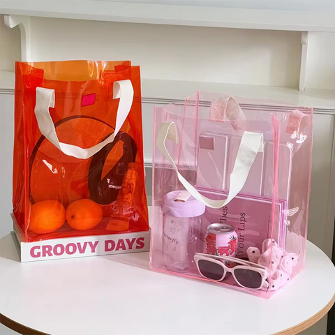 卸売防水カラーPVCスイミングビーチバッグカスタムロゴ透明ゼリーPVCトートバッグ旅行休暇用