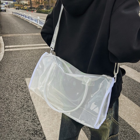 カスタム透明旅行ダッフルジムヨガショルダークロスボディトートバッグ屋外防水クリアスイミングビーチPVCショッピングバッグ