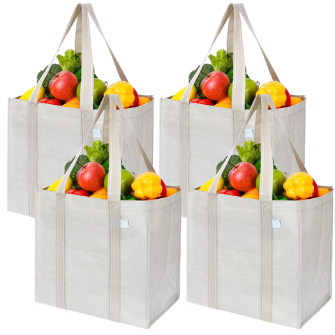 カスタムロゴエコフレンドリー織り素材折りたたみ式ボトムトートバッグ再利用可能食料品ヘビーデューティーショッピングバッグ日常生活のため
