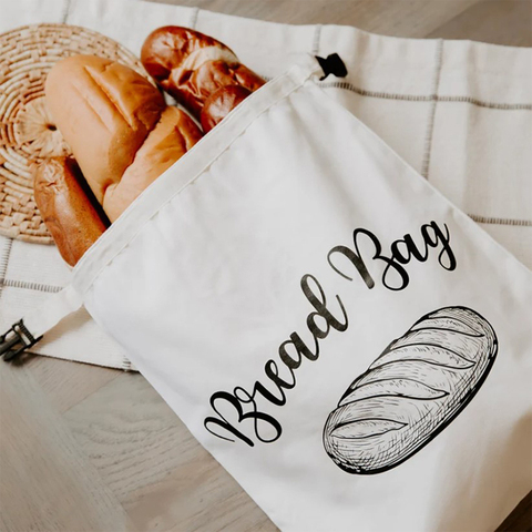 Sac à cordon réutilisable pour pain en lin et coton avec logo personnalisé pour pain baguette fait maison