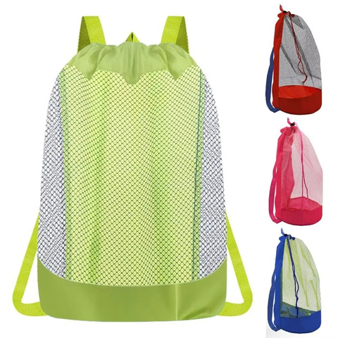 사용자 정의 대용량 접이식 통기성 장난감 보관 끈 가방 빠른 건조 휴대용 수영 해변 메쉬 졸라매는 끈 배낭
