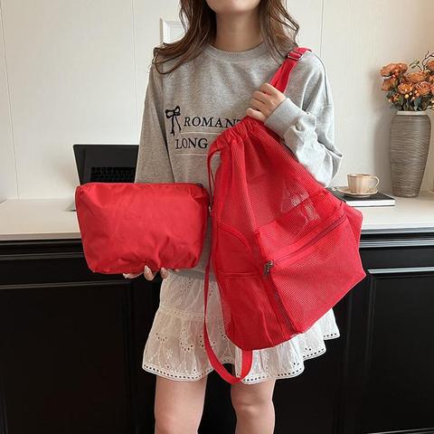 사용자 정의 야외 여행 캠핑 중공 끈 배낭 가방 메쉬 수영 해변 졸라매는 끈 배낭 추가 작은 가방