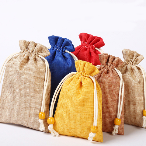 도매 재사용 가능한 황마 자루 선물 보관 포장 졸라매는 끈 쇼핑 가방 맞춤형 로고 삼베 졸라매는 끈 파우치
