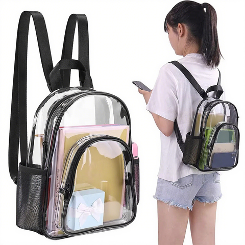 Multi Pocket Portable Lightweight PVC Transparent School Backpack Durable Custom Clear Backpack for Work Outdoor Sports